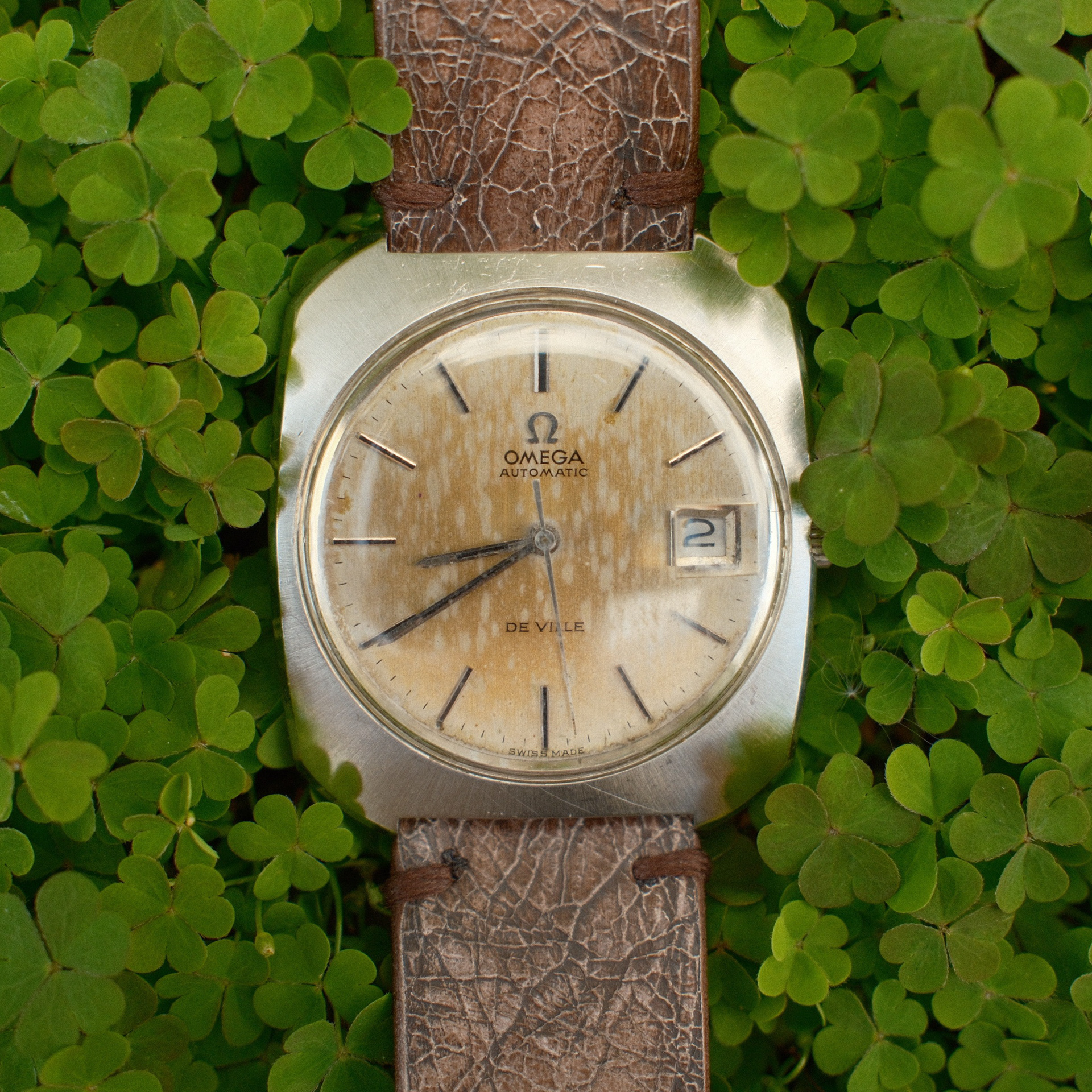It doesn’t get any cooler than this. A 1970s Omega De Ville reference 166.085 with an amazing tropical dial! These watches came with a very quirky and distinctive square case that just screams 1970s all over, and depicts a trend of the era that will take you back to a funky disco ball night in Rio. This watch definitely stands out from the crowd with it’s funky square case and the beautiful tropical dial that has aged naturally over the decades.