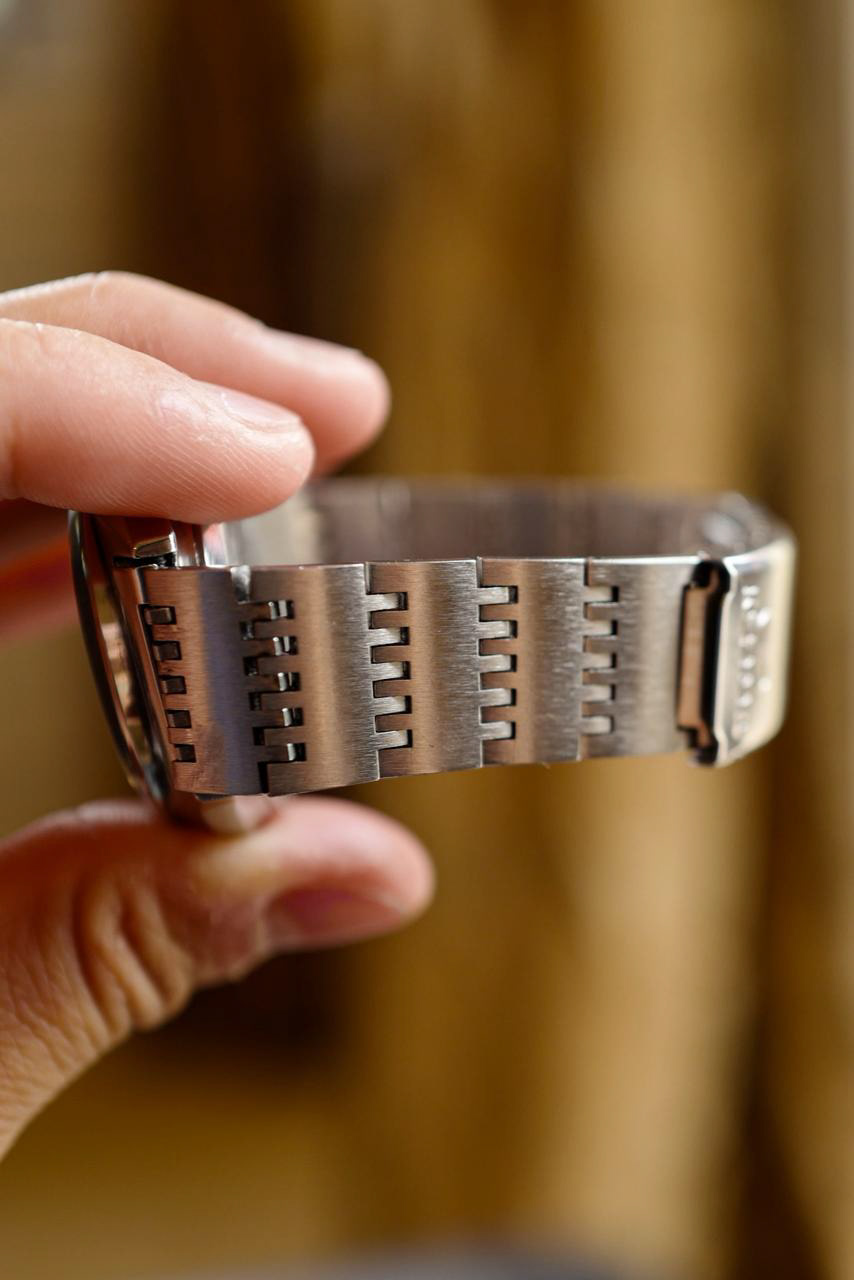 This watch is in overall excellent condition. The original sunburst dial is clean, with only a minor peeling near the 10 O’clock marker, visible through a loupe. The case has been lightly polished in the past and is still retaining strong and sharp edges. The watch comes with its original stainless steel bracelet, and is still in excellent condition. There are minor scratches throughout, and shows a minor dent at the bezel near the 2 O’clock. The movement has been serviced, dismantled, oiled and is now keeping good time.