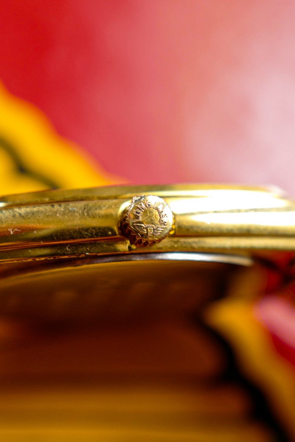 This watch is in overall good and original condition. There are small and consistent bubbling throughout the original champagne dial. The case had been lightly polished in the past and shows dents throughout the case, with the gold filling still thick and no fading. The watch comes with its original factory gold filled bracelet, with the gold surface starting to corrode consistently around the bracelet. The watch also comes with a bonus new leather strap from us. The watch had been fully overhauled and serviced and is keeping excellent time. Video of timegrapher result after service is available upon request.