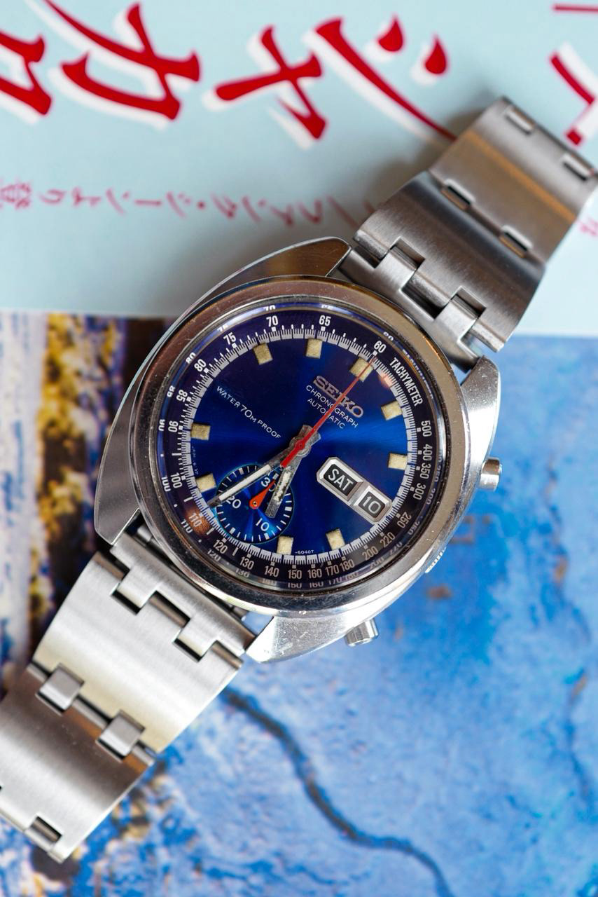 Bruce Lee, philosopher, martial artist, and symbol of discipline, was photographed wearing a Seiko 6139-6010 during the final years of his life. He didn’t choose it for status. He chose it because it matched his philosophy: efficiency, strength, and purpose. The watch we have here is an early blue dial version having the desirable “Water 70m Proof” which in later years, Seiko got rid of this text. This makes the early “Proof” dials desirable amongst vintage Seiko collectors, as it was also the model Bruce Lee wore as his personal watch. Today, the Seiko 6139-6010 Blue “Bruce Lee” Water 70m Proof stands as a symbol of a turning point, when Japanese watchmaking challenged the old world and won, not with luxury, but with innovation.