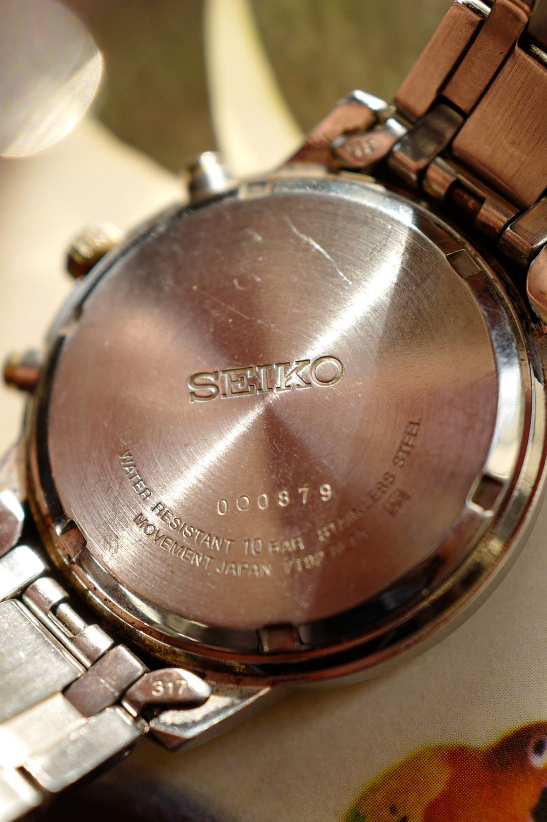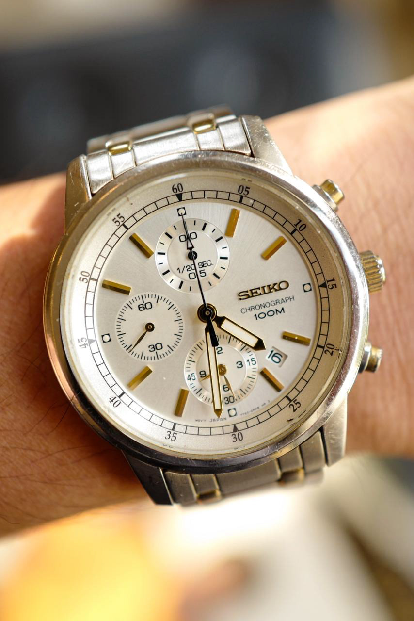 This watch is in overall good condition. The dial is really good condition showing very minor flaws. The lume glows in the dark. The case and bracelet has honest scratches from 16 years of wear and use. A new battery had been replaced for the watch, and all the chronograph function works properly as it should. The watch is not water-tested and might not perform according to its factory rating.