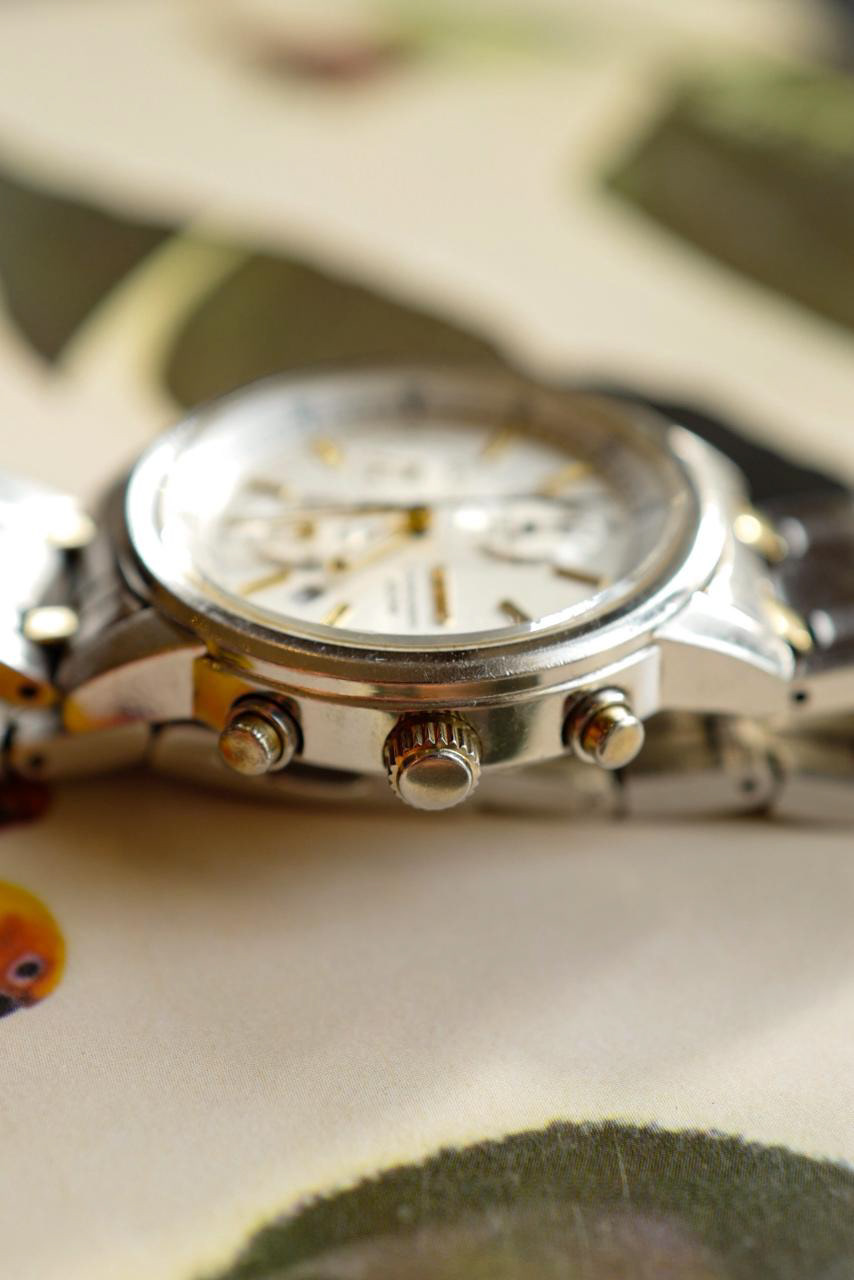 Its tri-subdial layout delivers full chronograph functionality, allowing precise measurement of elapsed time, while the discreet date window adds everyday practicality. The slim bezel and polished stainless-steel case give the watch a balanced wrist presence, sporty enough for active use yet refined enough for formal wear.
