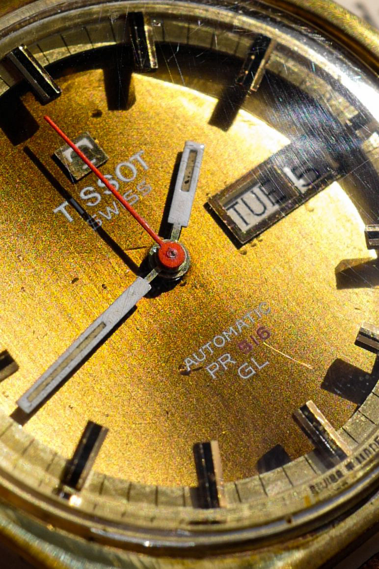 This watch is in overall great condition. The original dial is still in good shape, with visible minor bubbling over the dial’s varnishing in some areas, and a visible scratch below the “516” text. The lume on the dial and hands are original and has never been relumed, with the lume starting to turn creamy brown. The day date features works fine, and the case although had seen some polishing over the years still holds the gold filling fairly thickly with no signs of fading. The watch comes with an aftermarket strap still in good condition, and the movement had recently been serviced, with the movement dismantled, cleaned, re-oiled, and calibrated, and is now keeping good time for a vintage piece.