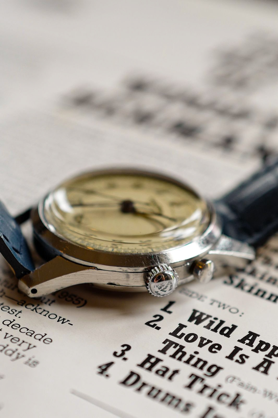 This watch is in overall great condition. The original dial is in great condition with minor signs of wear and has a beautiful patina. The lume on the dial is the original radium lume, and the hands had been relumed. The case had been lightly polished in the past and is still nice and sharp, wearing some minor scratches. The watch comes with a high quality leather strap still in good condition. The movement has been checked by our watchmaker and is still keeping great time, and the alarm function working normally sounding loud and crisp. Video of alarm mechanism is available upon request.