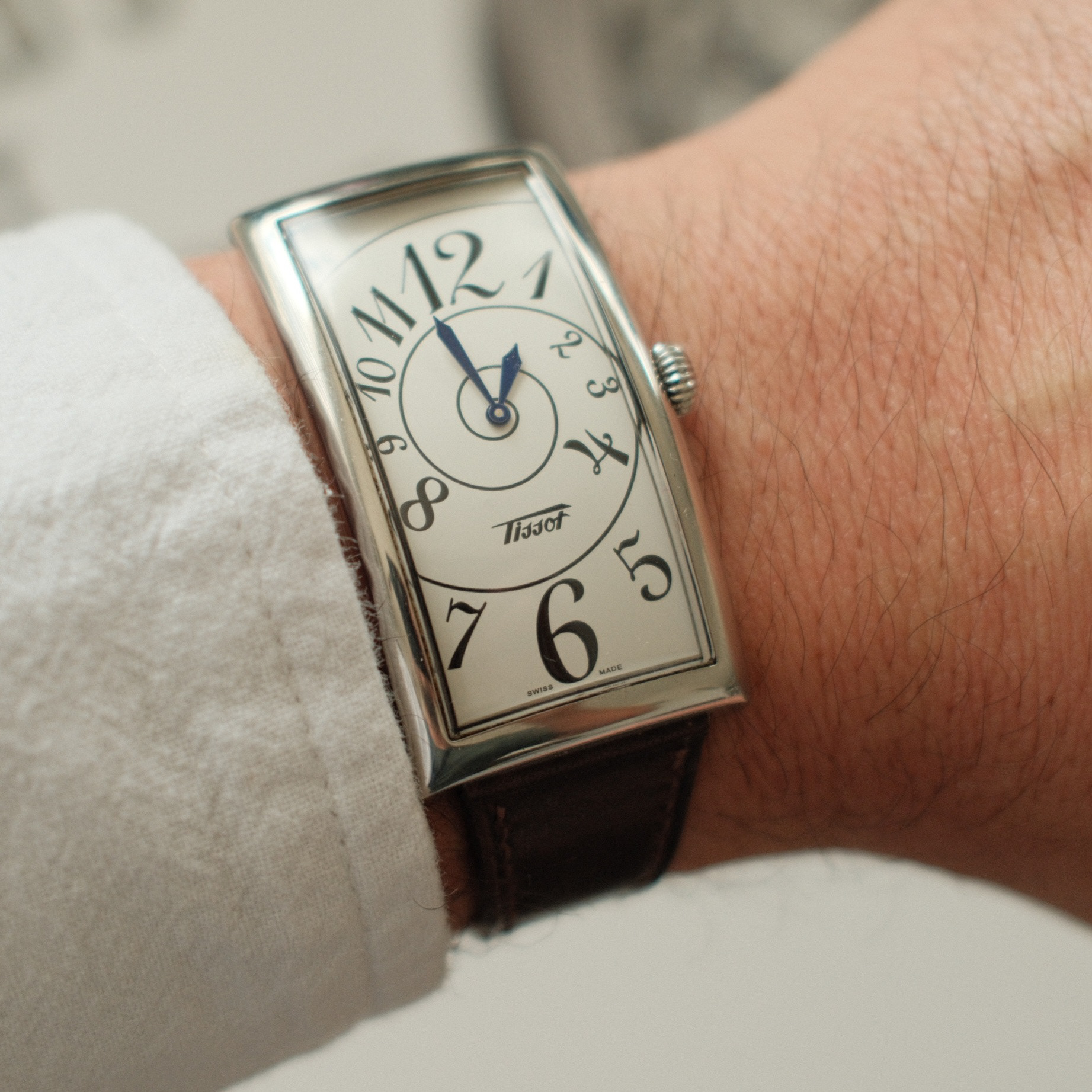 The Tissot Heritage Banana is one of the most distinctive pieces in Tissot's catalogue. It's a watch that leans heavily into the Art Nouveau aesthetic from the 1916 in Russia, during the Romanov dynasty. The Tissot Heritage Banana is a modern tribute to a 1916 design intended for the Russian market which had such a presence in Russia so much that the Tsar's court was among their clientele. This especially rare spiral dial was intended as a limited edition for the Russian market only making this watch even more unique and super rare. The beautifully polished casing with spiral dial make this one of kind watch such a pleasure to read the time and such a fun play on classic style and presence.
